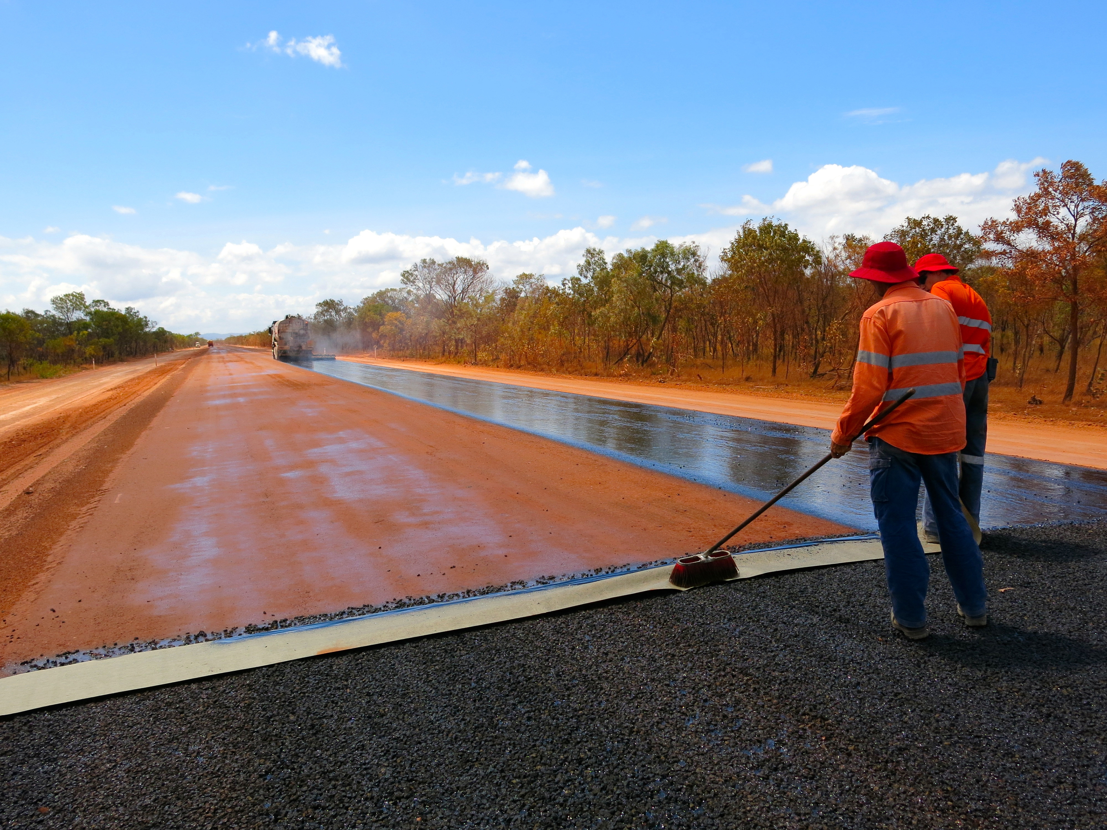 Gravel laid on wet bitumen at Sorayas Hill on the Peninsula Developmental Road, Cape York Region Package