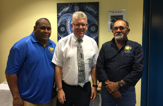 From left Former Mayor, Woorabinda Aboriginal Shire Council, Philip Alberts; TMR Director-General Neil Scales; former Councillor Vincent Ghilotti, Woorabinda Aboriginal Shire Council